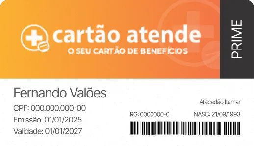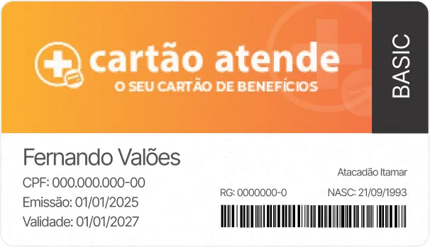 Com o Cartão Atende, você e sua família têm acesso imediato a consultas médicas, exames e uma rede de benefícios que cabem no bolso. É saúde de qualidade sem filas, sem burocracia e sem pesar no orçamento.